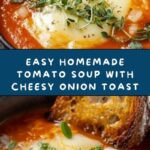 A comforting and flavorful Tomato Soup served alongside crispy Cheese and Onion Toasts. This recipe combines a rich, herb-infused tomato base with garlicky sautéed vegetables, paired perfectly with warm toasted bread topped with caramelized onions and melted cheddar and Monterey Jack cheeses for a satisfying meal.