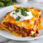 Tortilla Chip Enchiladas combine crunchy tortilla chips with a savory ground beef filling, smothered in rich enchilada sauce and melted cheese. This easy-to-make casserole is baked to bubbly perfection and topped with your choice of garnishes, offering a flavorful twist on traditional enchiladas that’s perfect for family dinners or casual gatherings.