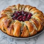 This Turkey and Cranberry Crescent Ring is a delicious and festive way to enjoy your holiday leftovers. Featuring tender turkey mixed with tangy cranberry sauce and melty cheese, all wrapped in flaky crescent roll dough shaped into an eye-catching wreath. Perfect as a main course or appetizer, this savory-sweet dish is easy to prepare and bakes to golden perfection, making it an ideal crowd-pleaser for gatherings or cozy family meals.