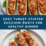 - Stuff Zucchini Boats: Spoon the turkey and vegetable mixture into each zucchini half, packing the filling evenly inside.