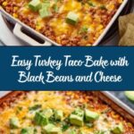 This Turkey Taco Bake is a flavorful, hearty casserole combining lean ground turkey with a zesty taco seasoning, black beans, corn, and melted cheddar cheese. Perfect for a comforting weeknight dinner, it’s easy to prepare and serves six with optional toppings of sour cream and green onions for added freshness.