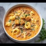 This comforting Tuscan Tortellini Soup features flavorful Italian sausage, tender cheese tortellini, and fresh spinach in a creamy tomato-infused broth. A perfect, hearty Italian soup that’s easy to make on the stovetop, combining robust seasonings with a luscious cream finish.