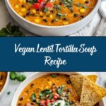 This Vegan Lentil Tortilla Soup is a hearty, flavorful, and nutritious meal that’s perfect for a cozy dinner. Made with protein-rich lentils, fresh vegetables, and warming spices like cumin and chili powder, this soup is simmered to perfection and topped with crispy tortilla strips and fresh cilantro for added texture and taste. It’s a wholesome plant-based recipe that’s easy to prepare and ideal for those looking for a comforting, vegan-friendly dish.