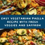 This vibrant Vegetarian Paella recipe features a medley of colorful vegetables, fragrant spices, and protein-rich chickpeas, all cooked together in a traditional paella pan or skillet. With tender rice infused with smoky paprika and saffron, this dish offers an authentic Spanish flavor without using any meat or seafood, making it perfect for vegetarians seeking a hearty and flavorful meal.