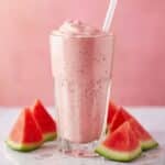 This refreshing watermelon smoothie combines frozen watermelon cubes, strawberries, creamy coconut milk, and Greek yogurt for a deliciously hydrating and fruity treat. Sweetened naturally with honey and brightened with lime juice, it’s perfect for a quick, nutritious snack or a healthy breakfast option.