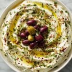 Whipped Feta with Tangy Olives is a creamy, flavorful appetizer perfect for quick entertaining or a delightful snack. Smooth whipped feta combined with cream cheese creates a luscious base, accented by bright lemon juice, a touch of honey, and freshly ground black pepper. This dip is topped with a mix of chopped kalamata and green olives for a tangy bite and a sprinkle of fresh oregano for a herbaceous finish. Serve it with pita bread, crackers, or fresh vegetables to enjoy a Mediterranean-inspired treat that’s ready in just 10 minutes.