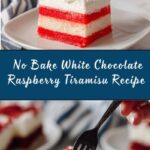 Delight in this luscious White Chocolate Raspberry Tiramisu, a no-bake Italian-American dessert featuring layers of mascarpone cream sweetened with melted white chocolate, fresh raspberries, and raspberry jam nestled between delicate ladyfinger cookies soaked in milk. Easy to make and perfect for any occasion, this tiramisu combines the rich flavors of white chocolate and tart raspberries for a refreshing twist on a classic treat.